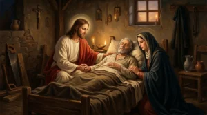 San José es invocado universalmente como patrono de la buena muerte, una devoción enraizada en la tradición